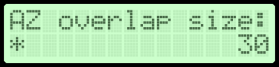 AZ 360 imp count - количество импульсов на оборот антенны. Допустимые значения: 0 - 1000.AZ overlap pos - начало зоны перехлеста провода. Заход в эту зону учитывает положение провода.AZ overlap size - размер overlap зоны. Ограничивает движение для сохранности провода.Old interface - использование старого интерфейса пользователя.Elevation - поддержка элевации. При выключенном значении следующие настройки не будут отображаться.EL 180 imp count - количество импульсов при повороте на 180 градусов.EL start - минимальное значение элевации.EL end - максимальное значение элевации.По завершении меню настройки все данные сохранятся в EEPROM и загрузится прошивка.